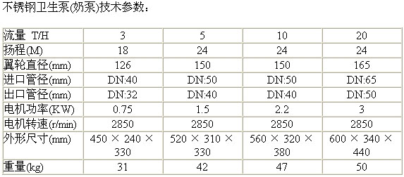 衛生泵又名離心式飲料泵、奶泵、不銹鋼飲料泵,適用于輸送牛奶和其它類似膠質的液體食品之用,吸取物料之最高溫度為 200 ,此泵是單吸全封閉式離心泵。