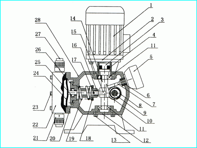 KD型隔膜式計量泵結(jié)構(gòu)圖: