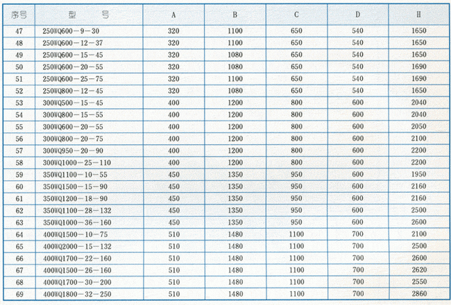 導航:回首頁---當前位置---水泵產品內容頁補充頁 >> WQ型無堵塞潛水排污泵外形安裝尺寸 |