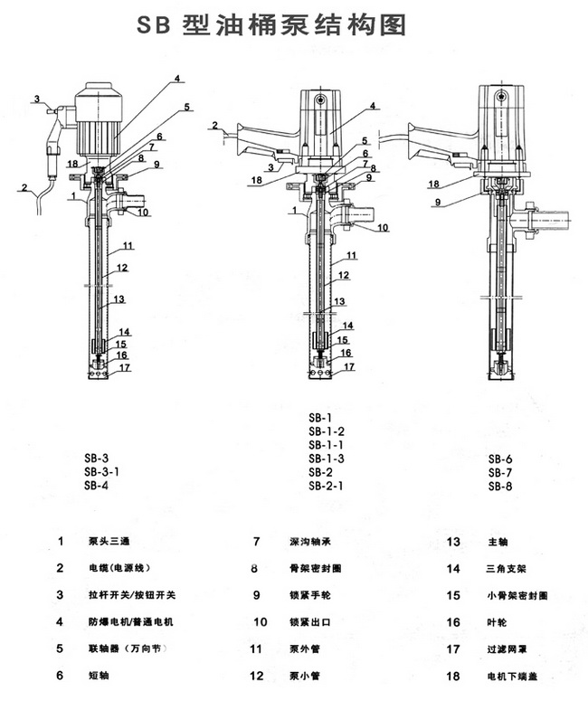 導(dǎo)航:回首頁---當(dāng)前位置---水泵產(chǎn)品內(nèi)容頁補充頁 >> SB型電動油桶泵結(jié)構(gòu)圖|CAD圖紙 |