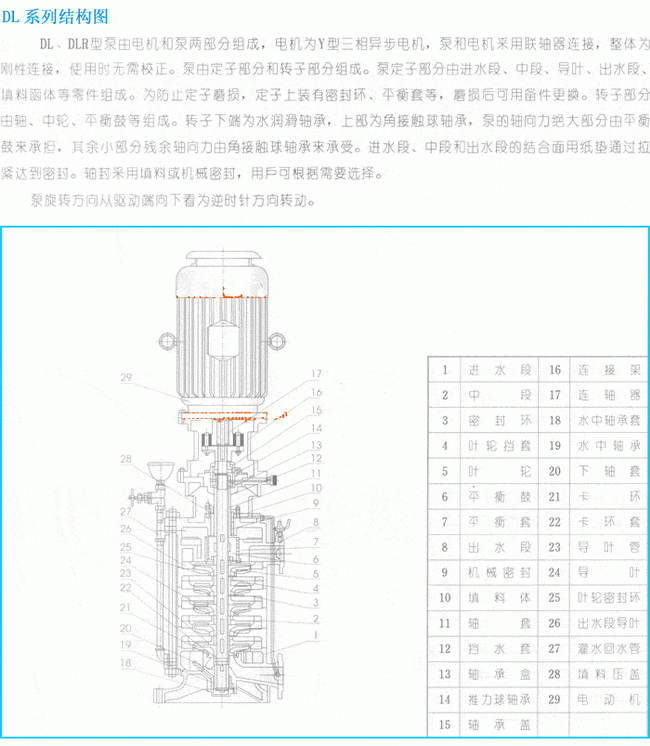 DL型立式多級(jí)離心泵結(jié)構(gòu)圖
