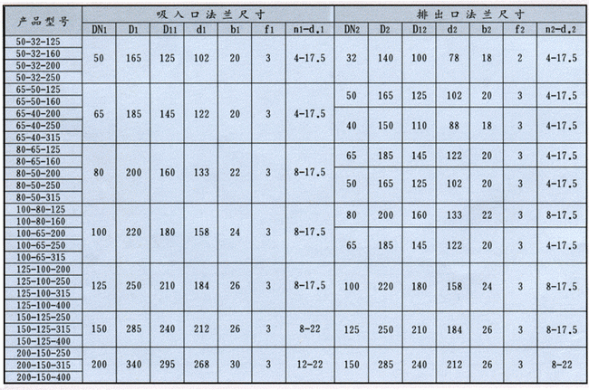 導(dǎo)航:回首頁---當(dāng)前位置---水泵產(chǎn)品內(nèi)容頁補(bǔ)充頁 >> IH型化工泵法蘭安裝尺寸 |